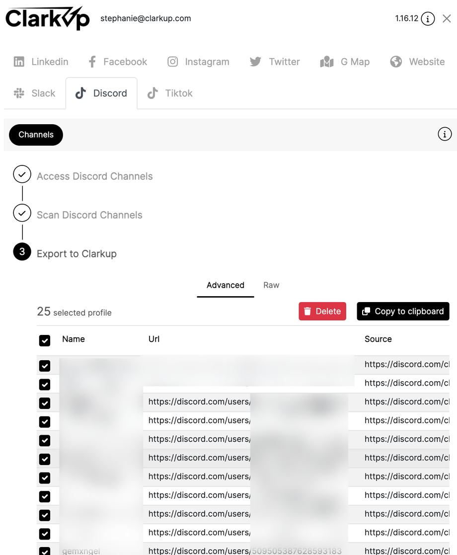 Vous venez d'intégrer, en quelques clics, sur votre espace membre ClarkUp des leads scrapés depuis les membres d'un channel Discord.