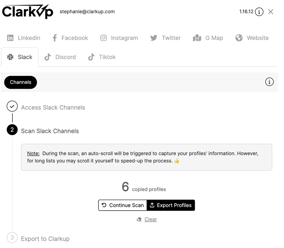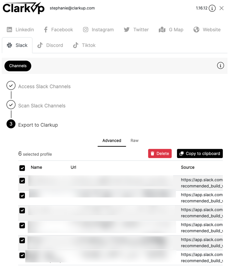 Vous venez d'intégrer, en quelques clics, sur votre espace membre ClarkUp des leads scrapés depuis les membres d'un canal Slack.