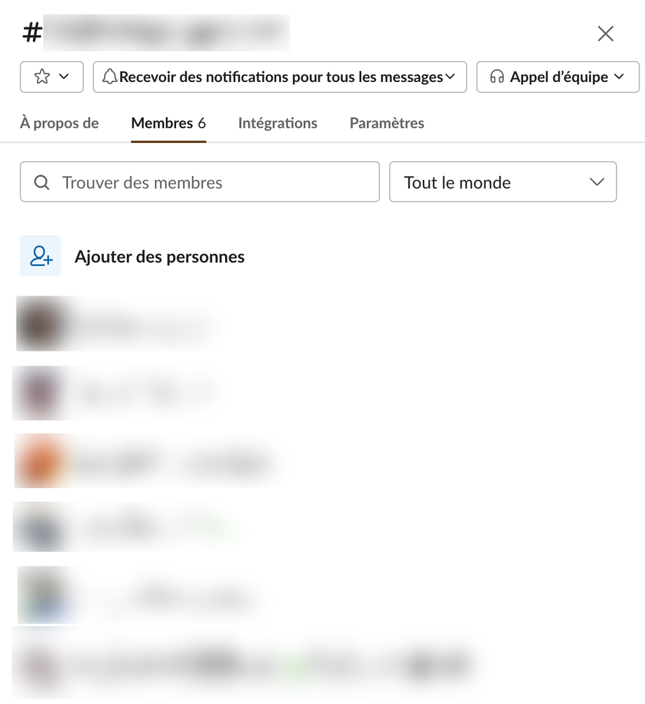 - Cliquez sur le titre du canal dans l'en-tête pour ouvrir la fenêtre du canal